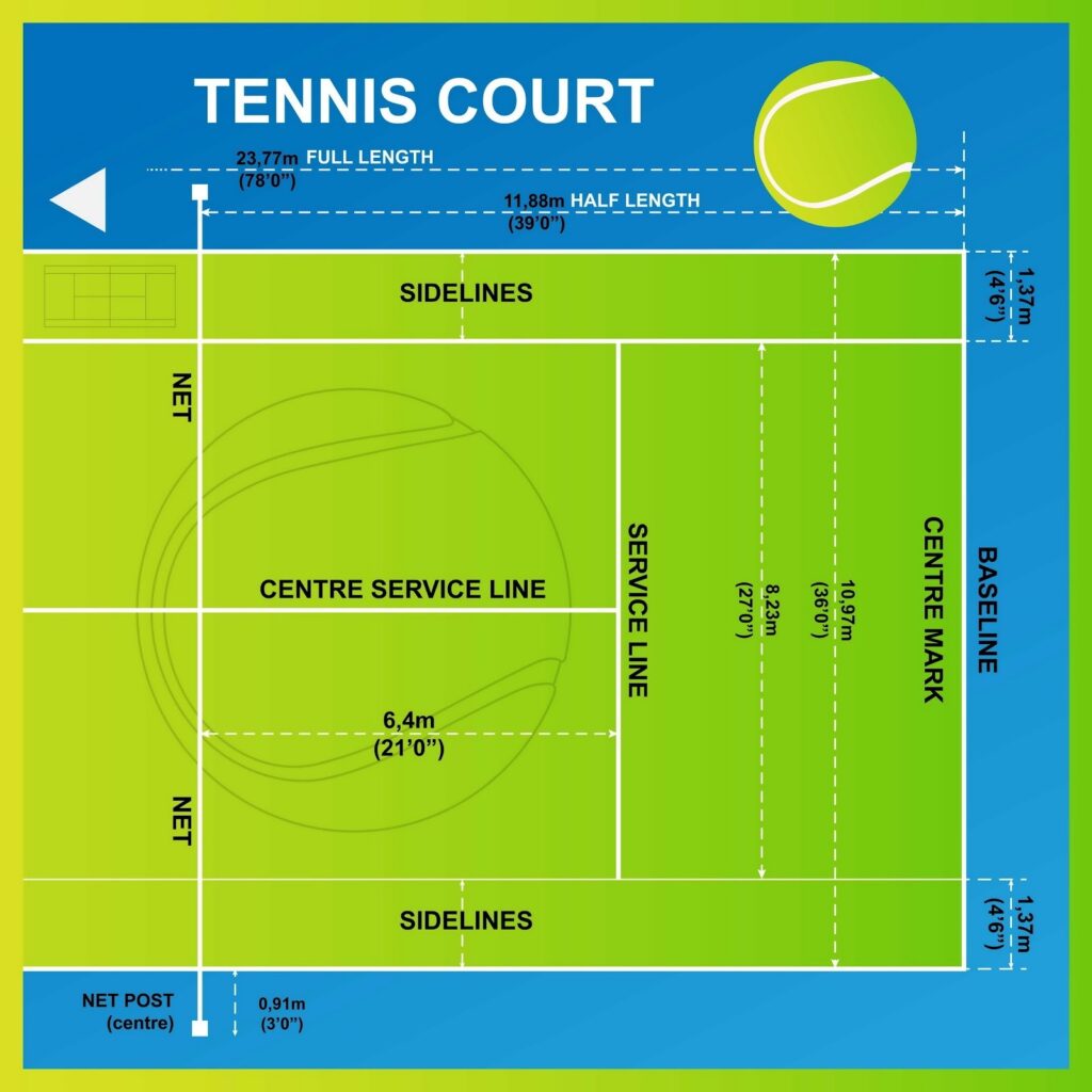 Dimensi lapangan yang tidak berubah selama lebih dari satu abad adalah bukti keseimbangan sempurna permainan tenis. Luas lapangan menuntut pemain tenis modern untuk menyeimbangkan kekuatan dengan akurasi. Jika lapangan lebih kecil, permainan akan terlalu cepat; jika lebih besar, rally akan terlalu melelahkan. Bentuk lapangan tenis kini adalah warisan atau bentuk pengembangan yang menjadikan tenis di era modern terasa lebih seru dan kompetitif!